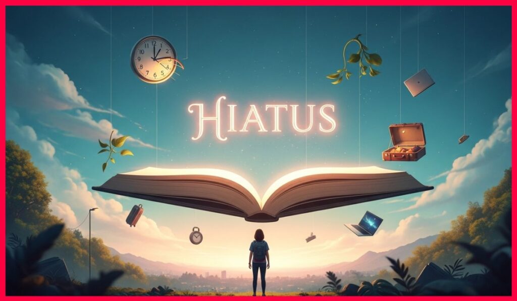 Now switching gears a little, let’s chat about hiatus, which seems like a word you either know super well or totally blank on. A hiatus is basically a pause, break, or temporary suspension in any activity, project, or schedule. You’ve probably seen it in TV / music / media shows, blogs, or even your favorite podcast, where creators announce a leave of absence or intermission.