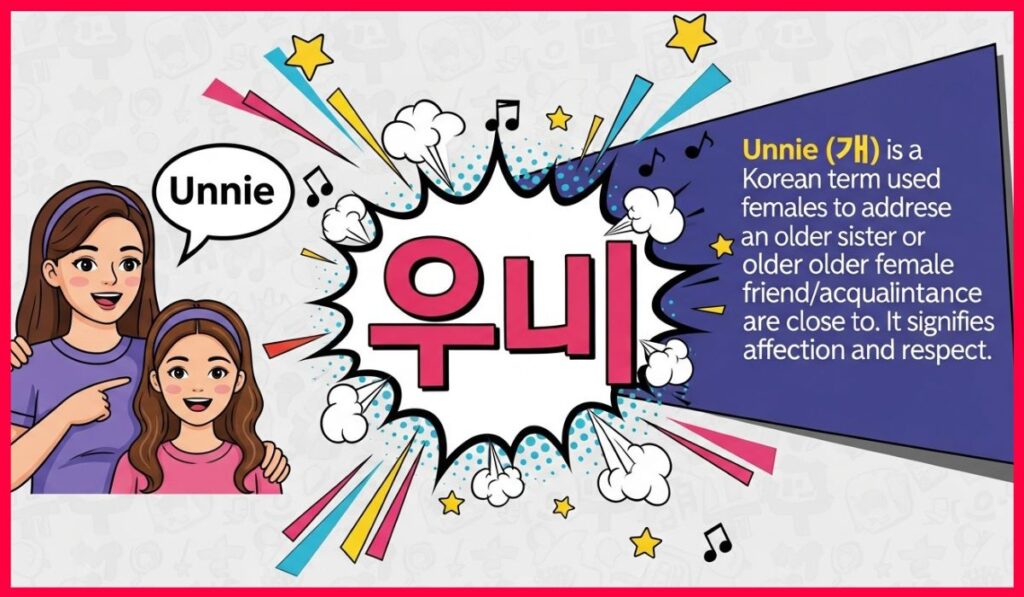 | Meaning of Unnie | Warm, affectionate female-to-female address term | Younger girls | Older sisters, close older friends | Korean culture, social media, fandom |